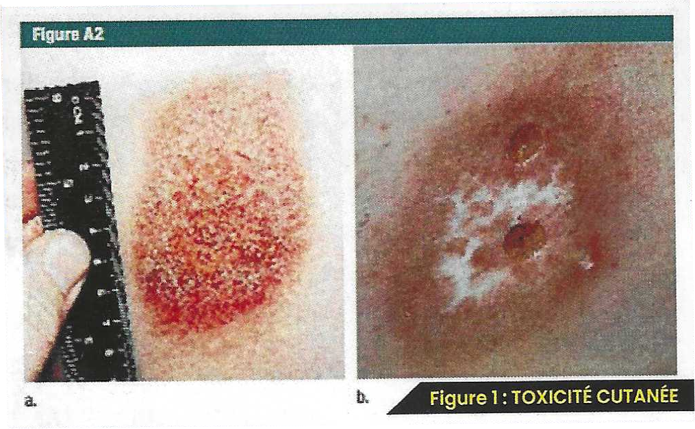 La lésion a évolué vers une hyperpigmentation, sclérose et ulcération 5 mois après la fluoroscopie